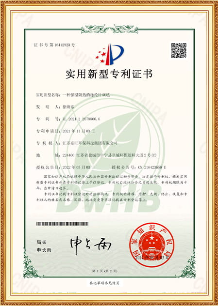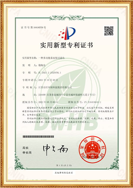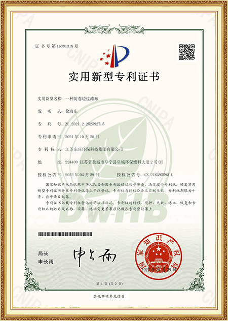 Şirketimizin güçlü ekonomik gücü, profesyonel teknik ekibi, gelişmiş üretim ekipmanları ve test araçlarının kaliteli güvencesi vardır. Şirket 1st Sektörde ISO9001-2008 Kalite Sistemi Sertifikasını geçti ve 2015 yılında Ulusal Çevre Etiketi Ürün Sertifikasyonu elde etti. 2019 yılında ulusal yüksek teknoloji işletmesi olarak onaylandı, 2021'de Yancheng Çevre Koruma Mühendisliği Teknolojisi Araştırma Merkezi Sertifikası aldı, Dongwang, 2023'te Jiangsu ProSince'de 2023'ten daha fazla yeni işletme olarak derecelendirildi. Jiangsu Eyaletindeki belirlenmiş çevre koruma filtresi malzeme işletmelerinden biridir.